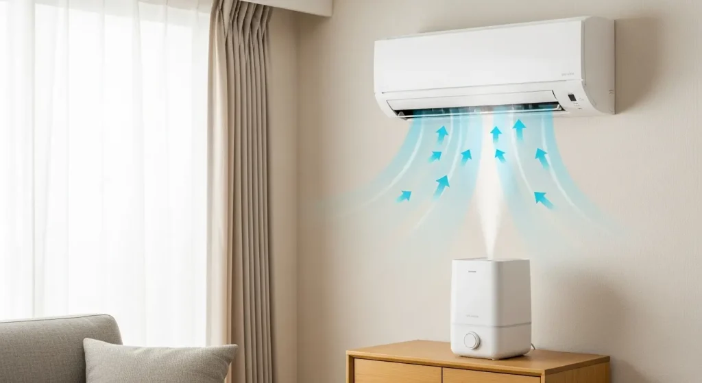 エアコン(暖房)は乾燥の主な原因ですが、実は加湿器の強力なパートナーにもなり得ます。
