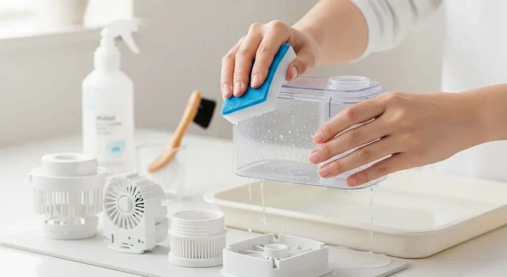 タンクの水は毎日必ず交換しましょう。古い水に注ぎ足すのはNGです。使わない日はタンクを空にして乾燥させてください。