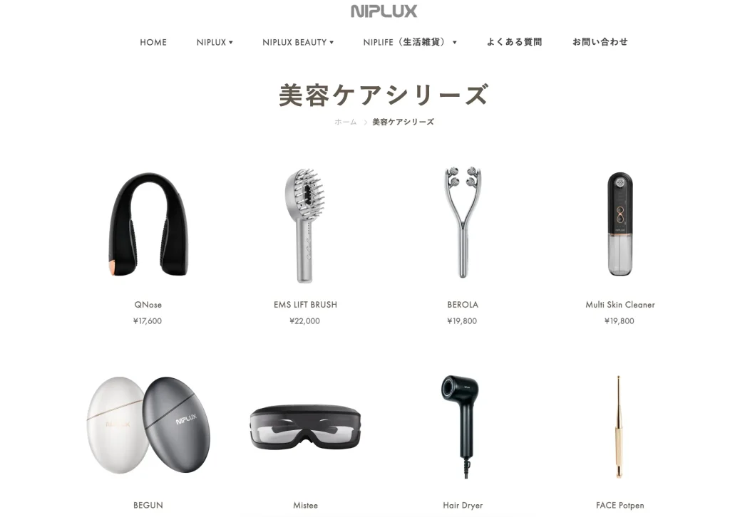 美顔器など美容ケア分野へも積極的に展開しており、NIPLUXが包括的な美容・ライフスタイルブランドとしての地位を確立しようとしていることがわかります。