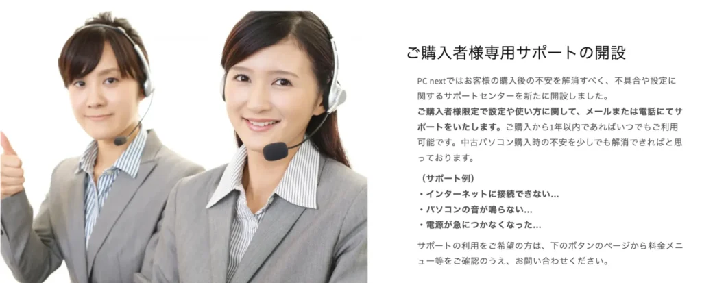 >>PC nextの1年間保証とサポート体制を詳しく確認する
