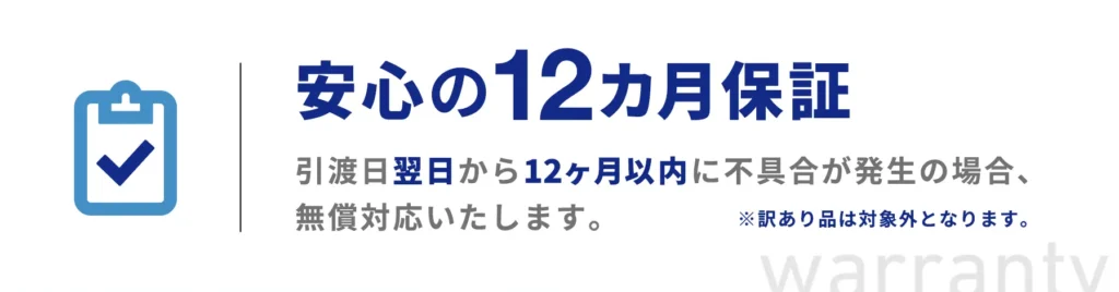 - 業界最長クラスの12ヶ月保証が標準で付帯する