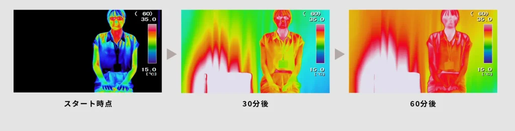 速さやパワーで部屋全体を強制的に暖めるのではなく、遠赤外線の力でじっくりと、陽だまりのような暖かさを提供することを哲学としています。そのため、空気を汚さず、乾燥させず、静かに運転することに特化しているんですね。