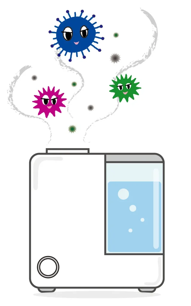 もし雑菌が繁殖してしまった水で加湿を続けると、その菌やカビの胞子を、目に見えないミストと一緒にお部屋の中にまき散らしてしまうことになりかねません。これを吸い込むことで、まれに「加湿器病」と呼ばれるアレルギー性の肺炎(過敏性肺炎)などを引き起こす可能性が指摘されています。これは、カビや雑菌に対するアレルギー反応の一種です。