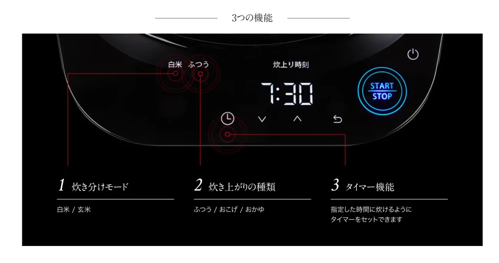 - 保温機能をあえてなくし、冷めてもおいしいごはんを目指している