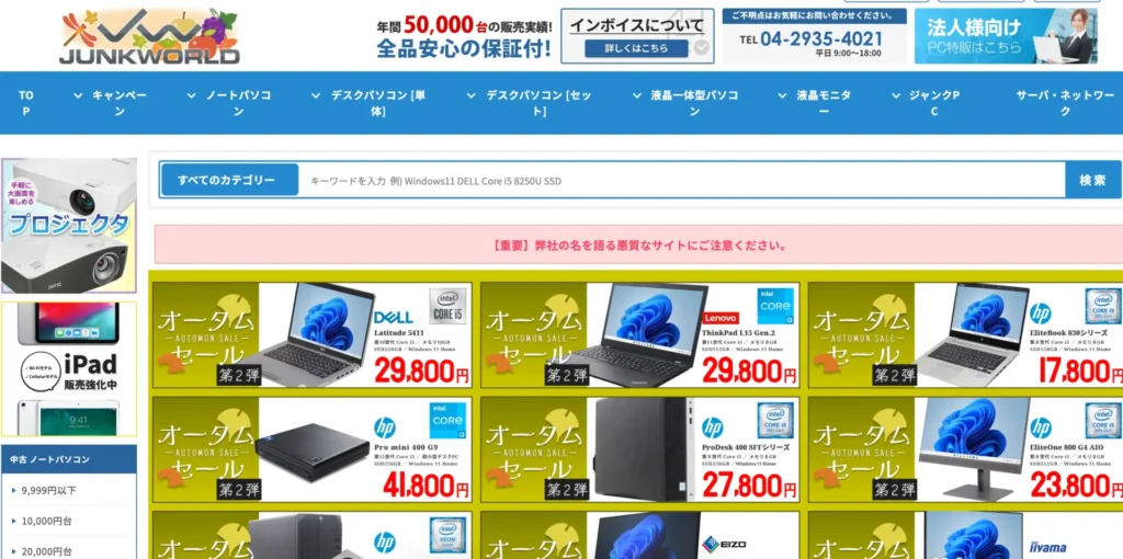 上級者・コスパ重視OSの再インストールやドライバの更新など、多少のトラブルは自分で解決できる方、あるいはサブ機を探している方は、保証コストを削ぎ落として価格に還元しているショップ(例:JUNKWORLD)で掘り出し物を探すのがおすすめです。